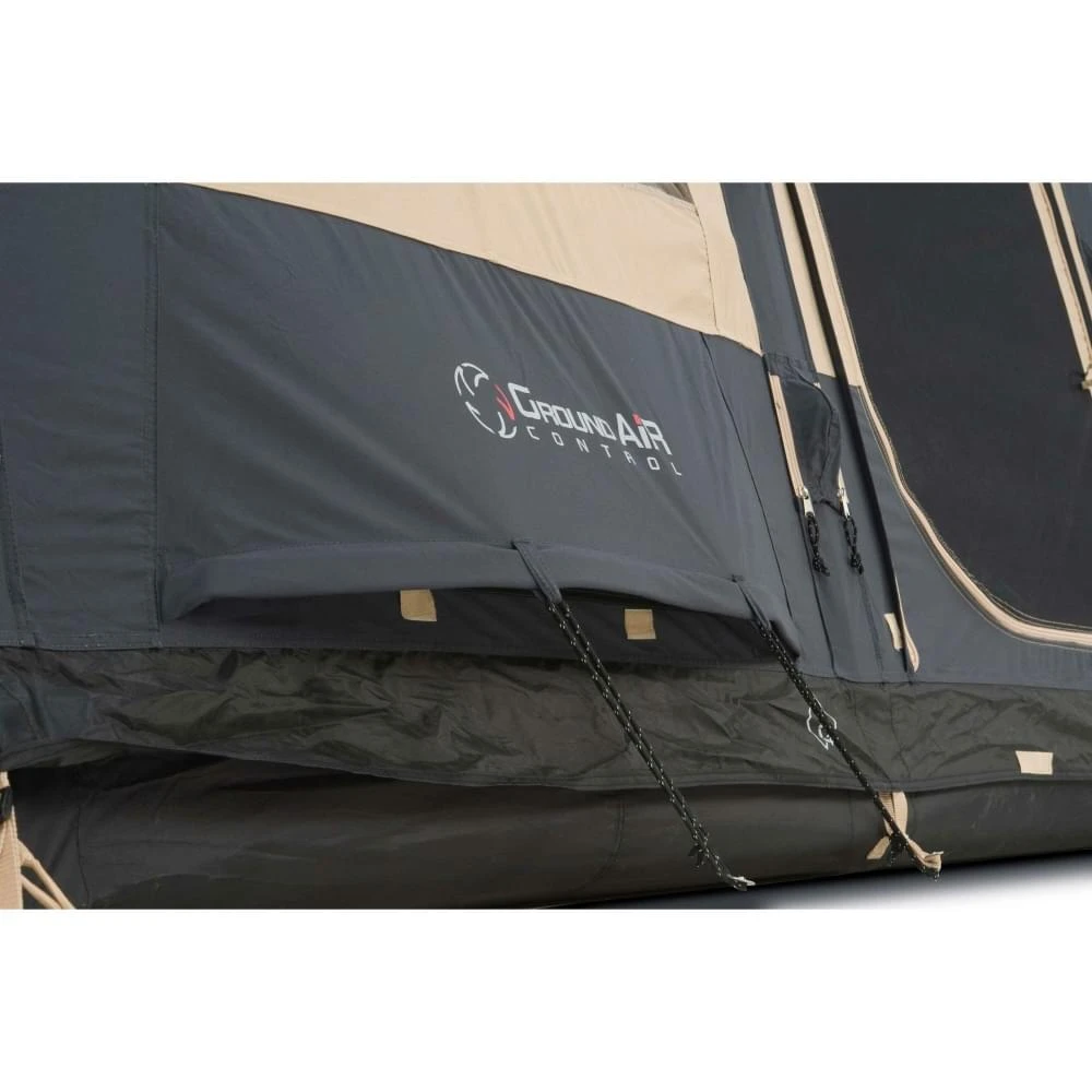 Het buitendoek van de tent is gemaakt van Technisch Cotton. Dit is een katoen variant waar ook een deel polyester in verweven is. Dit maakt de droogtijd wat korter en het uiteindelijke gewicht iets lager dan wanneer de tent van 100% katoen gemaakt is. Met de opblaasbare tunnels is de Airspace 470 TC AIR extra snel op te zetten en de rechte zijwanden geven extra leefruimte en stahoogte in de tent.
