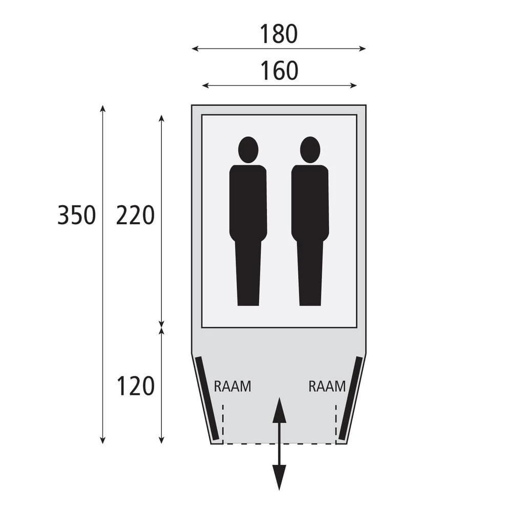 De Airwolf 180 TC van Bardani is een 2-persoons oppomptent. Deze tent beschikt over een handig voorportaal met een vast kuipzeil. Het kuipzeil is gemaakt van Oxford polyester en is licht van gewicht. Deze Airwolf is makkelijk op te zetten doordat hij beschikt over luchtbuizen. Je hoeft de tent alleen maar op te pompen met de meegeleverde pomp. Dit zorgt ervoor dat de tent makkelijk en snel staat. Tentstokken zijn dus niet meer nodig!