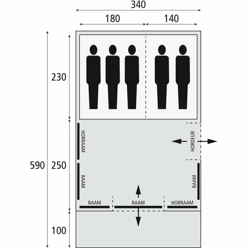 Verder beschikt deze veelzijdige tent nog over een volledige horrengaasdeur en er zit horrengaas aan de achterzijde van de binnentent. Aan weerzijden van de tent zit een handig stroomkabel doorvoersysteem die voorzien is van ritssluitingen.