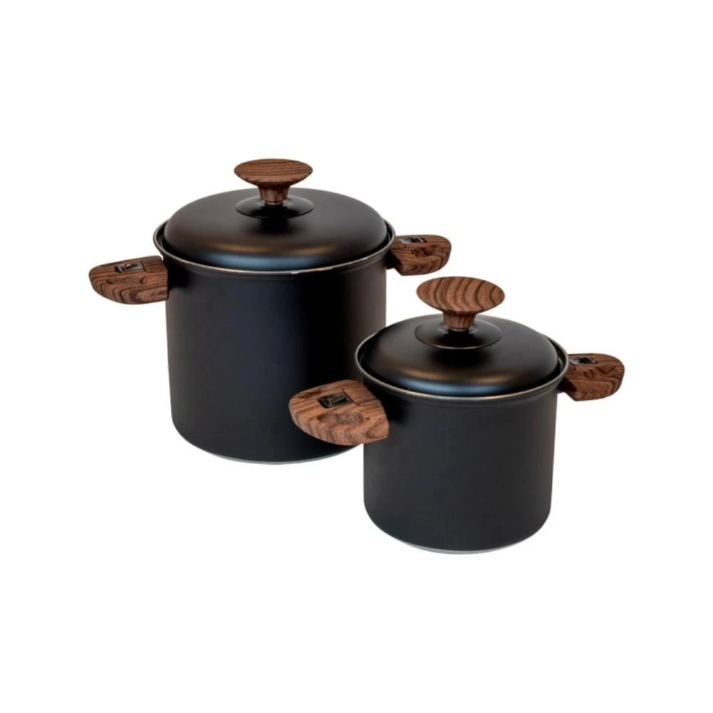 Misschien wel de mooiste Pannenset van Bo–Camp: de Industrial Hading Compact in een 2–delige en 3-delige set. Wie zegt dat koken op de camping alleen praktisch moet zijn? De zwarte rvs-pannen hebben een stoere industriële look met elegante houten handgrepen en dekseldop. De handgrepen zijn eenvoudig in te klappen waardoor het nog makkelijker stapelen is in de keukenkastjes. Stijlvol op vakantie tot in de keuken. Door het roestvrij staal zijn ze ook geschikt voor inductie kookplaten. Misschien ook leuk voor thuis.