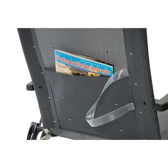 De AL-205 strandstoel van Crespo is ideaal voor een dagje strand of gewoon om te gebruiken bij de tent of caravan. De stoel heeft 7 standen, waardoor je een comfortabele positie kan kiezen. Aan de achterzijde zit een handige steekzak waar je een tijdschrift en wat te drinken in kan doen.