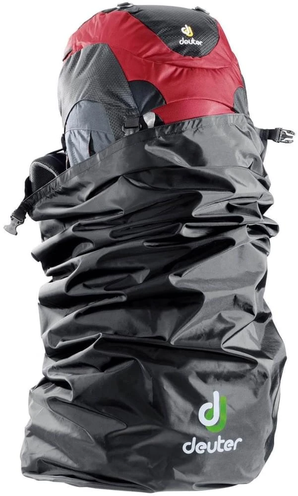 Met de Deuter Flight Cover kan je veilig je rugzak op transport zetten. Doordat de hele rugzak in de zak verdwijnt heb je geen uitstekels en riempjes die ergens achter kunnen blijven haken, en je rugzak beschadigd minder snel. De Flight Cover biedt daarnaast de mogelijkheid om meer spullen in te doen. Met een slotje kan je de transporthoes afsluiten. Om de tas makkelijk te vervoeren zitten er meerdere handvatten aan de Cover. Veel vliegtuigmaatschappijen stellen het verplicht om gebruik te maken van een transporthoes om de rugzak heen.