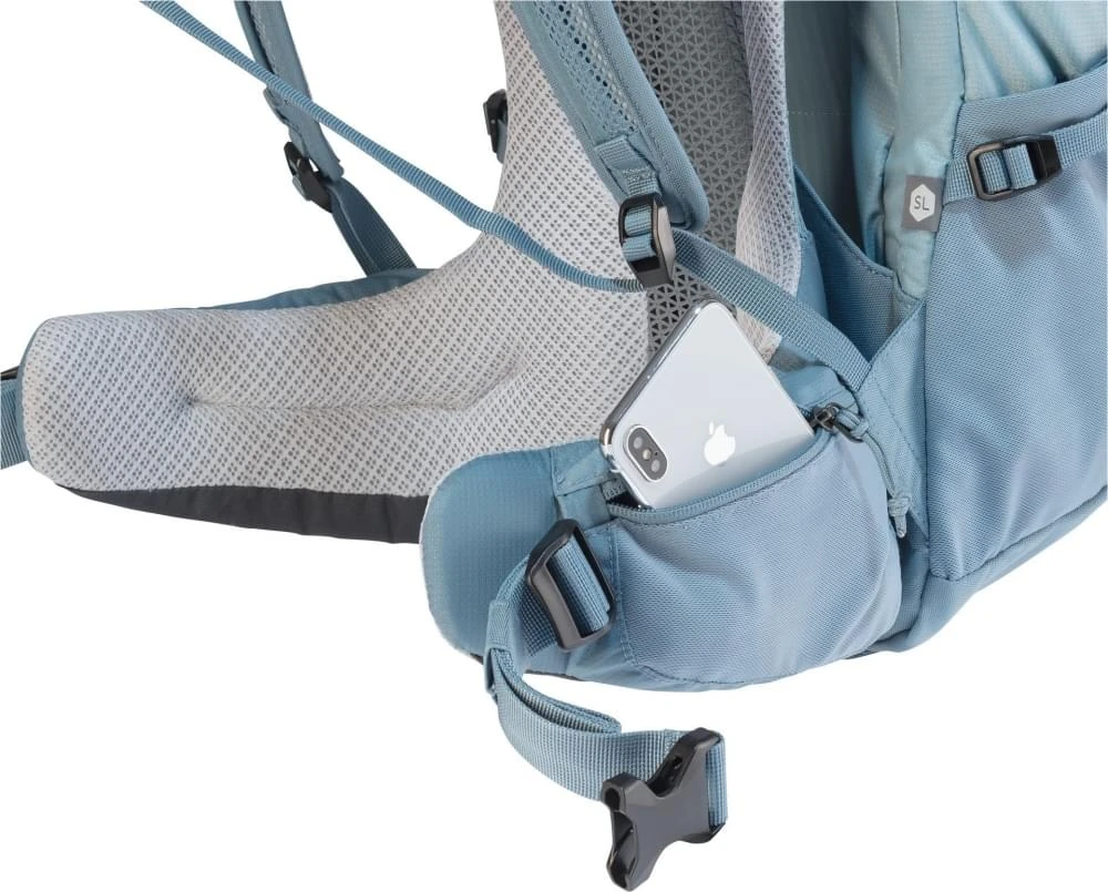 De Futura 25 SL heeft veel praktische features, waaronder twee elastische zijvakken, een afneembare regenhoes en lussen voor wandelstokken. Ook heeft de dames rugzak een voorvak waar een organizer in verwerkt zit. Hier kun je spullen zoals pennen en een laptop in kwijt. Daarnaast zorgt het Aircomfort systeem ervoor dat je maximale ventilatie ervaart.