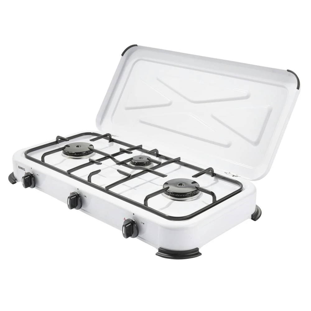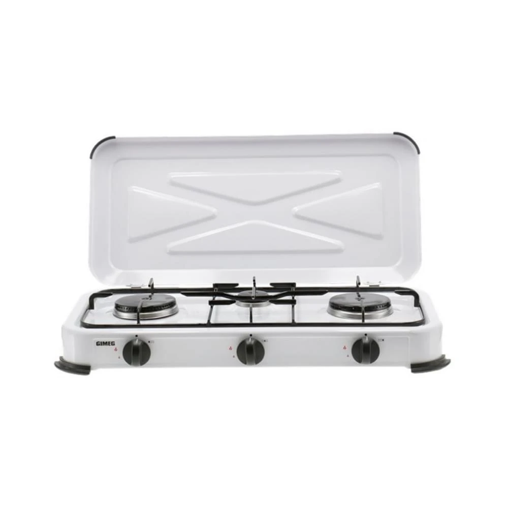 Het 3-Pits Kooktoestel is een perfect kooktoestel voor op de camping. Nu met verhoogd vermogen van 2 x 2.2 kW en een sudderpit van 0.9 kW. De geëmailleerde pannendrager zorgt ervoor dat de pannen stabiel staan en is ruim genoeg voor bijna alle campingpannen. De antislip voetjes zorgen voor nog meer veiligheid. Het deksel kan je na het koken sluiten waardoor je weer wat meer ruimte hebt of je gebruikt het deksel tijdens het buitenkoken als windscherm. Door de afneembare pannendrager is het 3-pits kooktoestel van Gimeg makkelijk schoon te maken.
