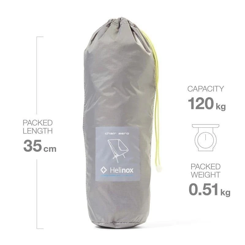 De Chair Zero kan worden gezien als de opvolger van de populaire Helinox Chair One. Hetzelfde model, dezelfde stokken, maar met een totaalgewicht van 490 gram is hij ruim 400 gram lichter. Het gewichtsverschil komt door het gebruik van speciale materialen en dat voel je direct.. In plaats van gaas zijn er nu open ventilatiegaten. Verder staat de stoel wat dichterbij de grond t.o.v. de Chair One.