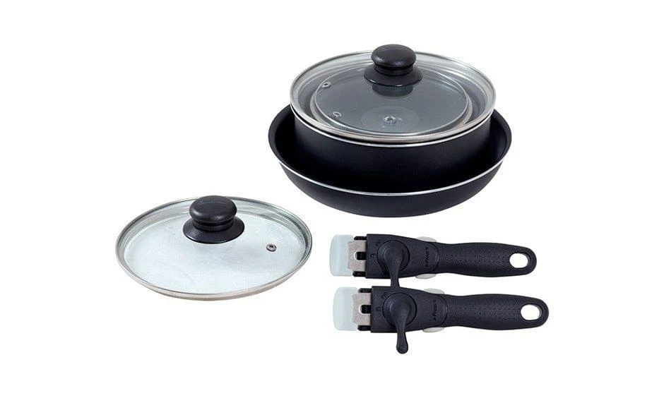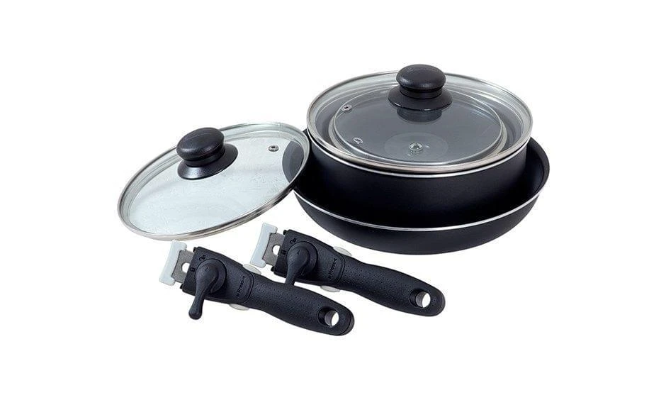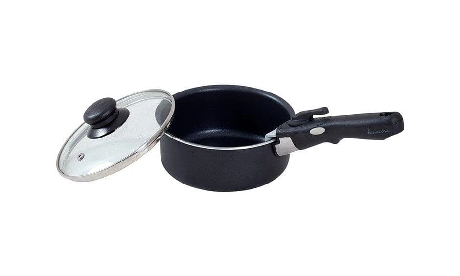 Een complete pannenset van Isabella. De pannen zijn geschikt voor alle warmtebronnen en opstapelbaar. Ideaal voor op de camping omdat je al zoveel wilt meenemen. De kookpannen zijn af te sluiten met een glazen deksel met koudgreep. Je pakt de pannen van het vuur met de afneembare pannengreep die je eenvoudig vastklikt en vastzet.