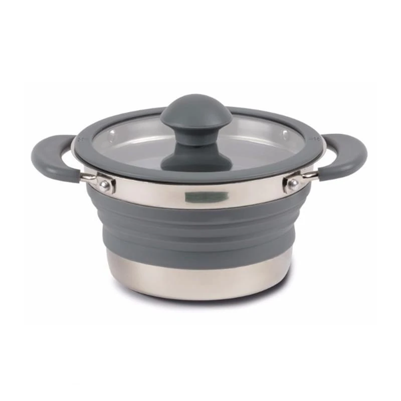 Deze opvouwbare pan van Kampa bespaart een hoop opbergruimte. Een groot deel van de pan kan namelijk opgevouwen worden, waardoor deze half zo hoog wordt. Ideaal wanneer je niet veel opbergruimte hebt, zoals bijvoorbeeld op de camping. De pan heeft een inhoud van 1 liter en wordt geleverd met glazen deksel en geïsoleerde handvaten. De pan zelf is gemaakt van RVS in combinatie met siliconen (hittebestendig, smaakloos, geurloos).