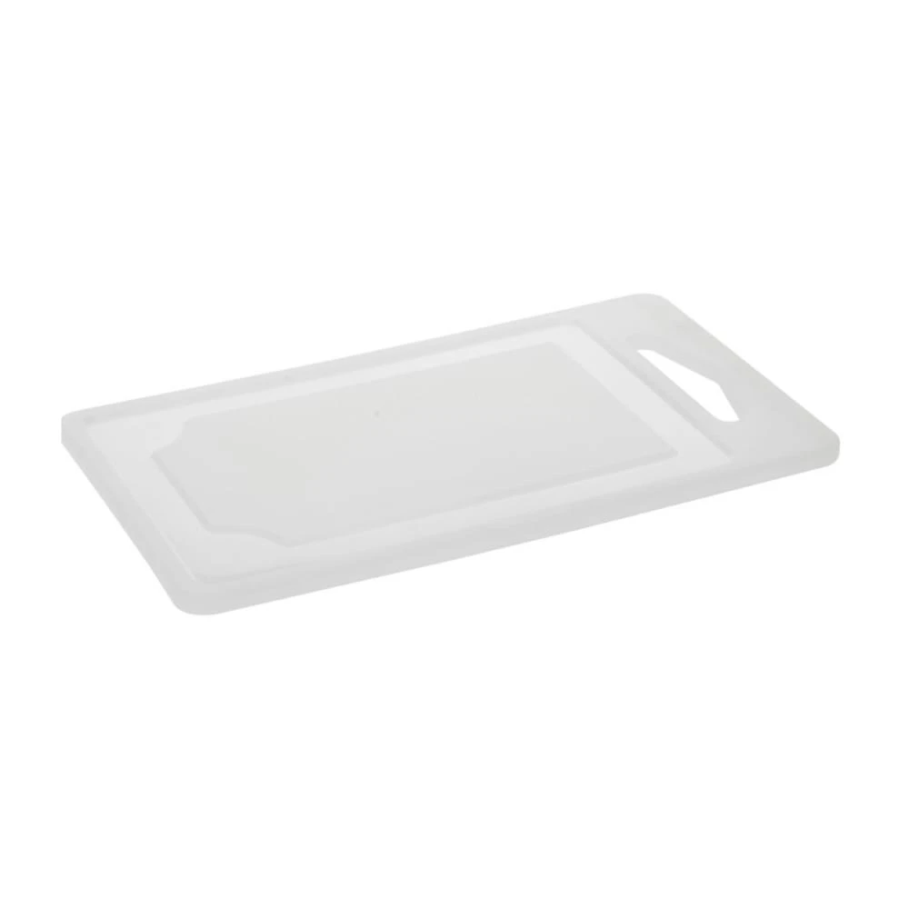 Deze compacte witte Snijplank Klein is gemaakt van kunststof, waardoor messen minder snel bot worden. Dankzij het gootje wat rondom de plank loopt vallen kruimels minder snel van de plank af.