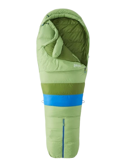 De mummyslaapzak heeft twee handige zijritsen die tot de helft opengaat, waardoor je er makkelijk inkruipt. Je kunt de voetbox opritsen voor meer ruimte bij je voeten en zorgt voor meer warmte als je hem weer dicht ritst. Binnenin zit een handig opbergcompartiment. Met een gewicht net boven de kilo is hij perfect voor al je trips.