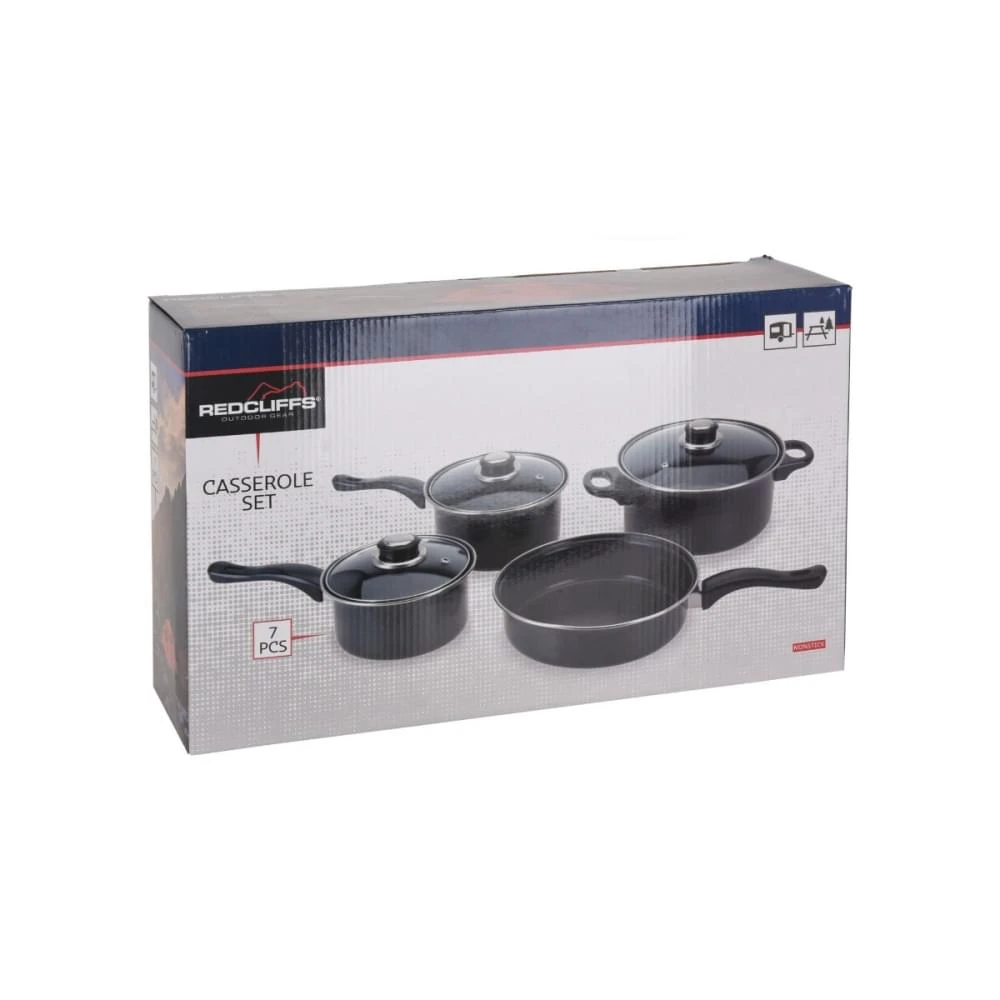Een complete 7-delige Non-Stick Pannenset, ideaal voor bijvoorbeeld op de camping. De set bevat: