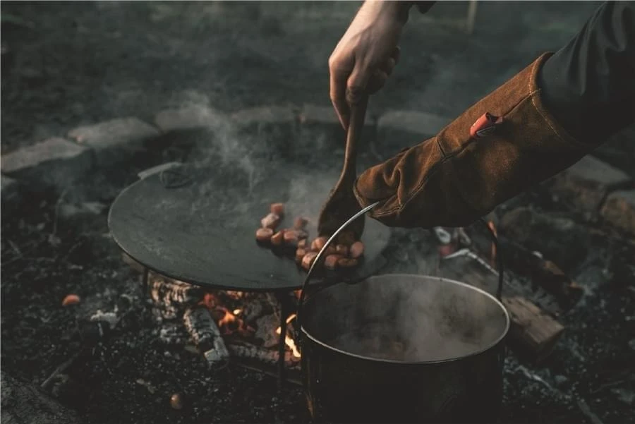De volledig leren handschoenen van Robens zijn hittewerend en vuurbestendig. De Fire Gloves zijn ideaal om te gebruiken bij open vuur om de hete gietijzeren pannen beet te pakken.