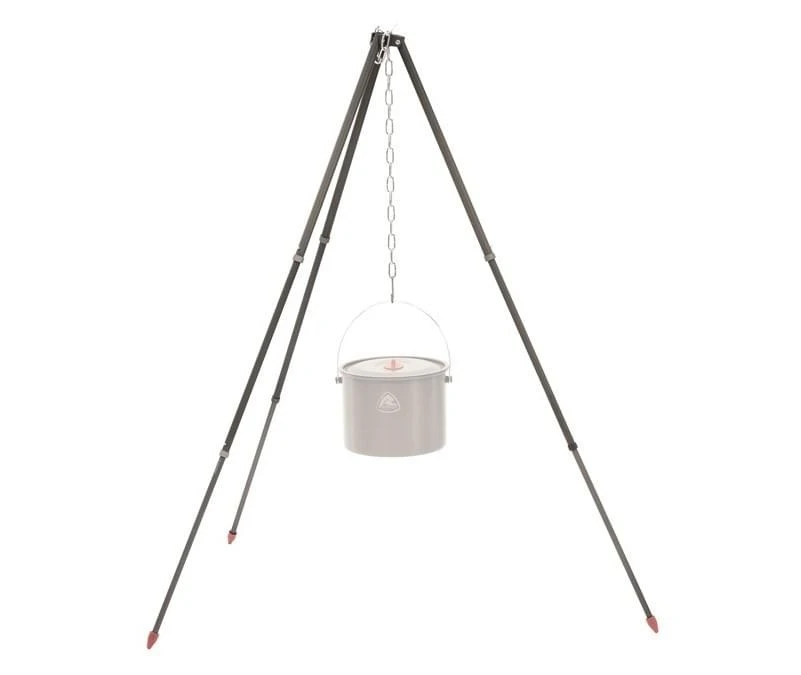 Kookpannen als een Dutch Oven hang je gemakkelijk boven het open vuur aan de telescopic aluminium tripod van Robens. Door de lengte van de ketting aan te passen kan je de kookhoogte regelen. Na gebruik is de driepoot, dankzij het telescopische design, compact en gemakkelijk in de meegeleverde draagtas in te pakken.