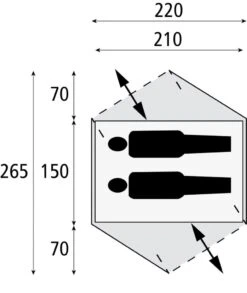 Zowel de slaapruimte als de voortent van de Kenia 160 TC zijn voorzien van een vast PE kuipzeil. In de voortent heb je voldoende ruimte om schoenen en andere spullen op te bergen.
